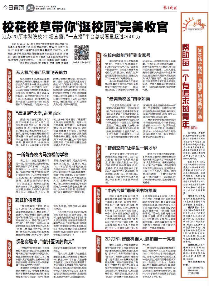 苏州大学的直播从获得过建筑类权威奖项“鲁班奖”的理工实验大楼开始,到敬文书院、文星阁、“土豪”食堂、怡远楼、存菊堂……在两位主持人的带领和讲解下,苏大的一处处风光、一个个办学成果在镜头前得到了淋漓尽致的展现。这所学子们口口相传的“最美校园”更是收获了超过176万网友点赞。逛大学校园自然也少不了去图书馆“打卡”。主播李乐瑶介绍,苏大图书馆共有4个分馆,分布于三个校区。“就拿我们面前的本部图书馆来说吧,整个建筑以美式风格为基调,同时内部又引入了苏州园林的内部庭院设计理念,可谓是一座‘中西合璧’的图书馆呢。”另一位主播史迪文在直播中透露,在苏大独墅湖校区,还有被评为全国50大最美图书馆第一名的炳麟图书馆,它也是苏大校园除了理工楼之外的另一座鲁班奖建筑。
